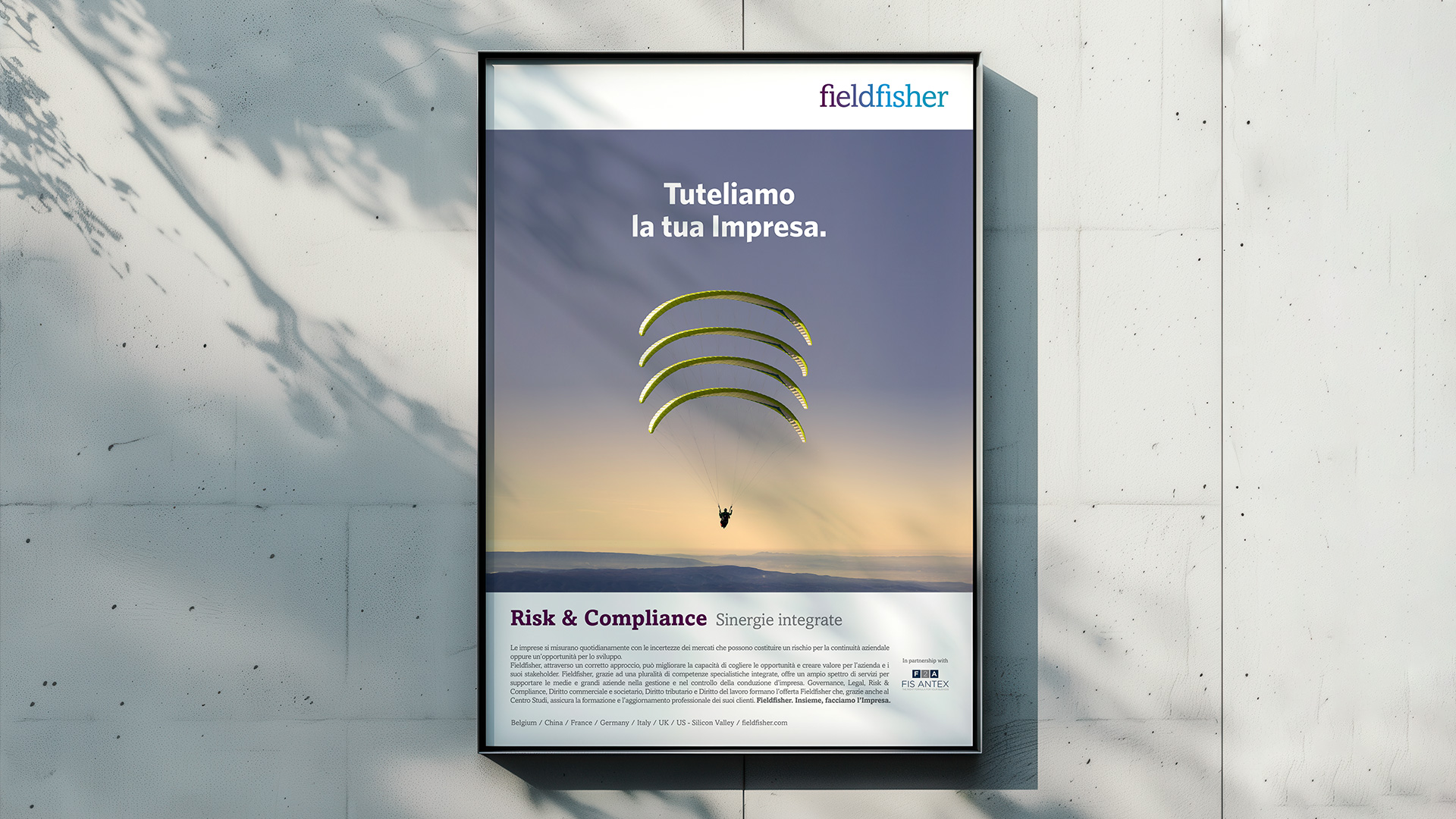 Studio e realizzazione della campagna stampa per Fieldfisher, pubblicata su riviste di settore.
